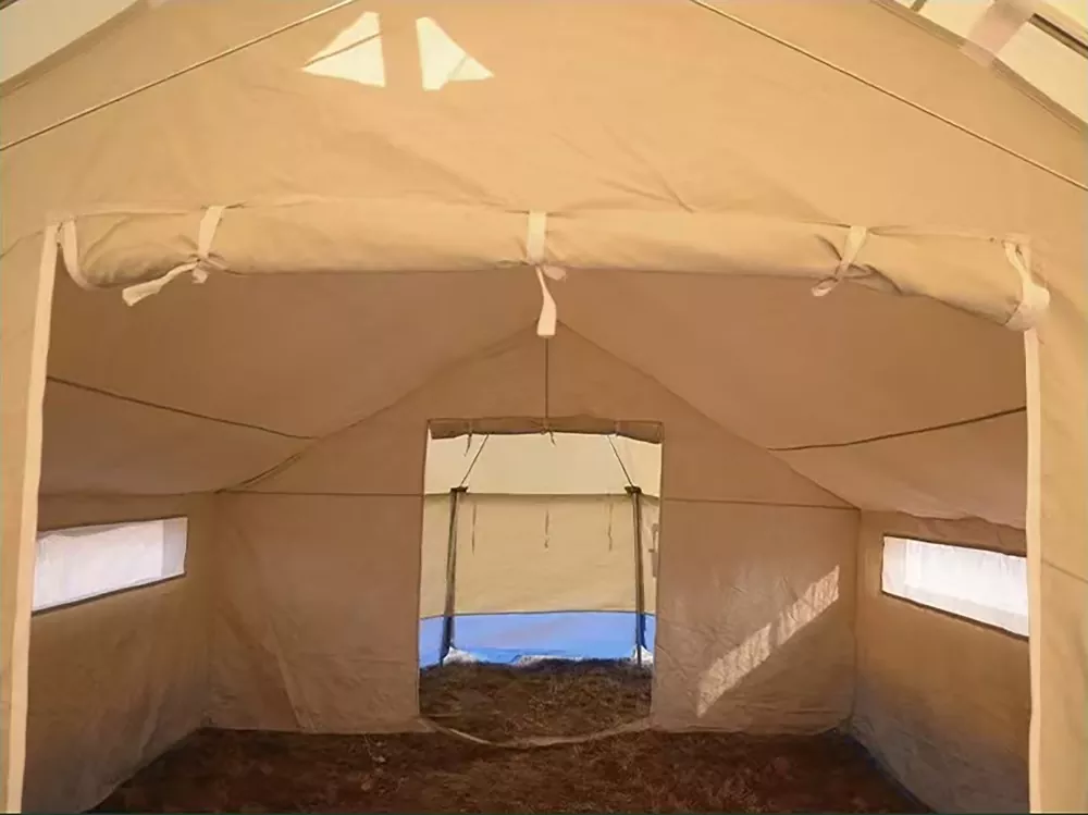 Tashqi chodir: Polyester-paxta aralashmasi yoki HDPE qatlamli mato, uch tomonlama himoya (suv o'tkazmaydigan, olovga chidamli, ultrabinafsha nurlarga chidamli)